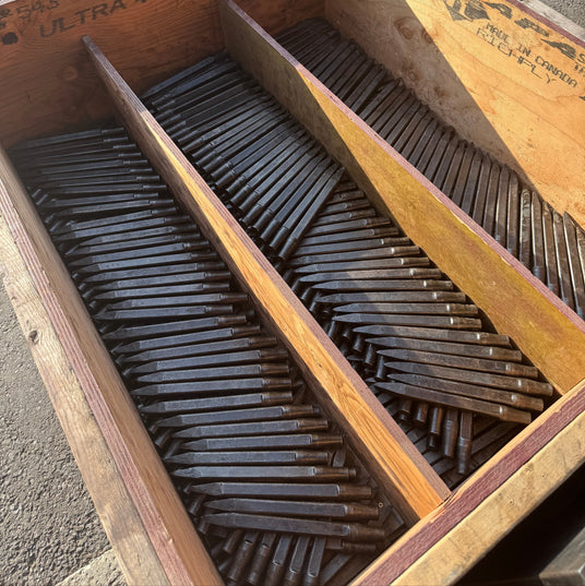 Once accepted, the tools are placed into our high-degree industrial oven. This critical step heats the steel to the right temperature, making the point malleable and flexible without compromising its integrity. Unlike simple grinding, which weakens the tool over time, controlled heating allows us to reshape and re-engineer the metal properly, preparing it for the next stage of transformation.